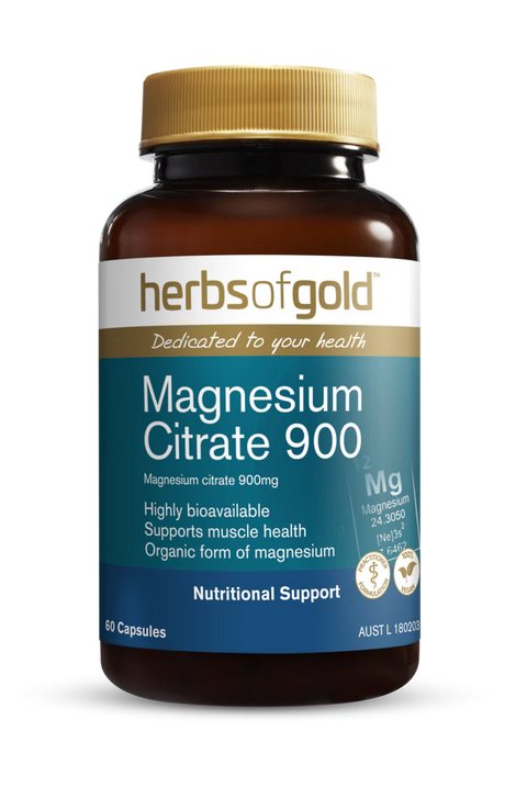 Magnesium Citrate 900 by Herbs of Gold is a high-strength magnesium supplement using magnesium citrate — one of the most bioavailable forms of magnesium available. Magnesium is involved in over 300 enzymatic processes in the body, yet it remains one of the most commonly under-consumed minerals in the Australian diet. Physical activity, stress, poor dietary variety and certain medications can all deplete magnesium levels, making supplementation a practical and worthwhile daily addition for most people.